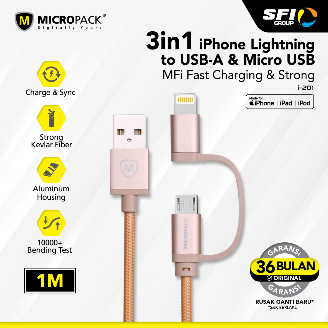 Micropack Cable USB-A to Micro & Lightning Cable 2-in-1 Combo – Kabel 1,8 Meter – I-218