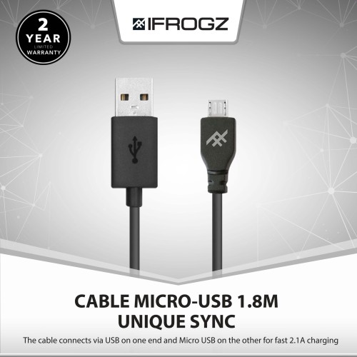 IFROGZ CABLE UNIQUE SYNC MICRO USB CABLE 1.8M BLACK