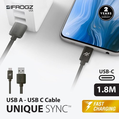 IFROGZ CABLE USB A – C UNIQUE SYNC 1.8M BLACK