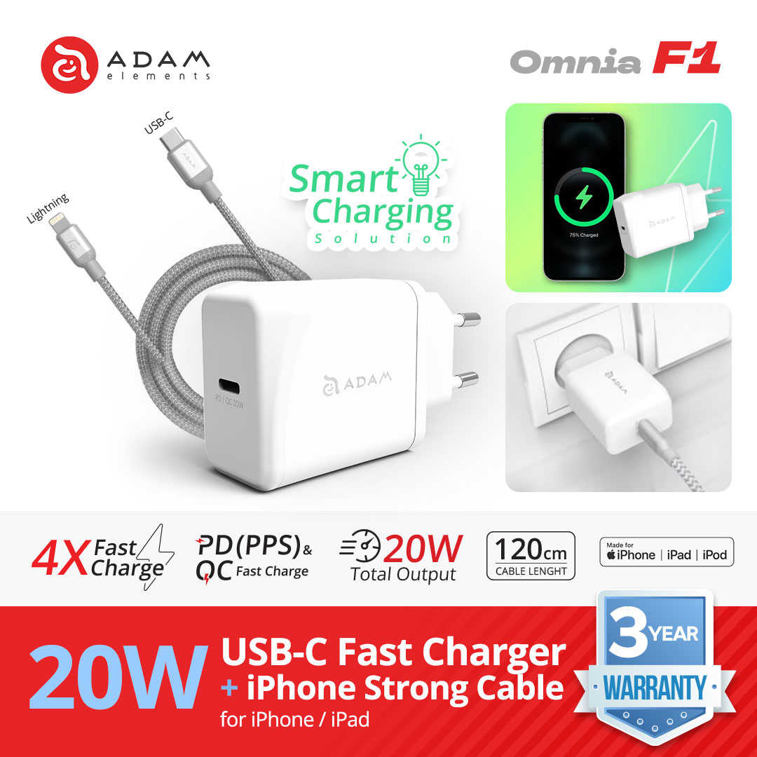 ADAM ELEMENTS WALL CHARGER KABEL C LIGHTNING FOR IPHONE IPAD OMNIA F1 FAST CHARGE KIT