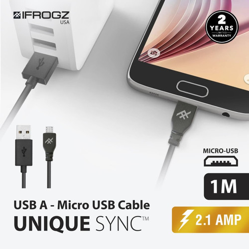 IFROGZ CABLE UNIQUE SYNC MICRO USB 1M BLACK