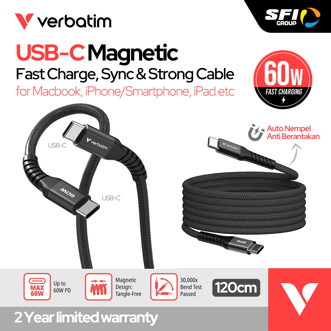VERBATIM CABLE MAGNETIC USB C TO C KEVLAR – 60W – 120 CM