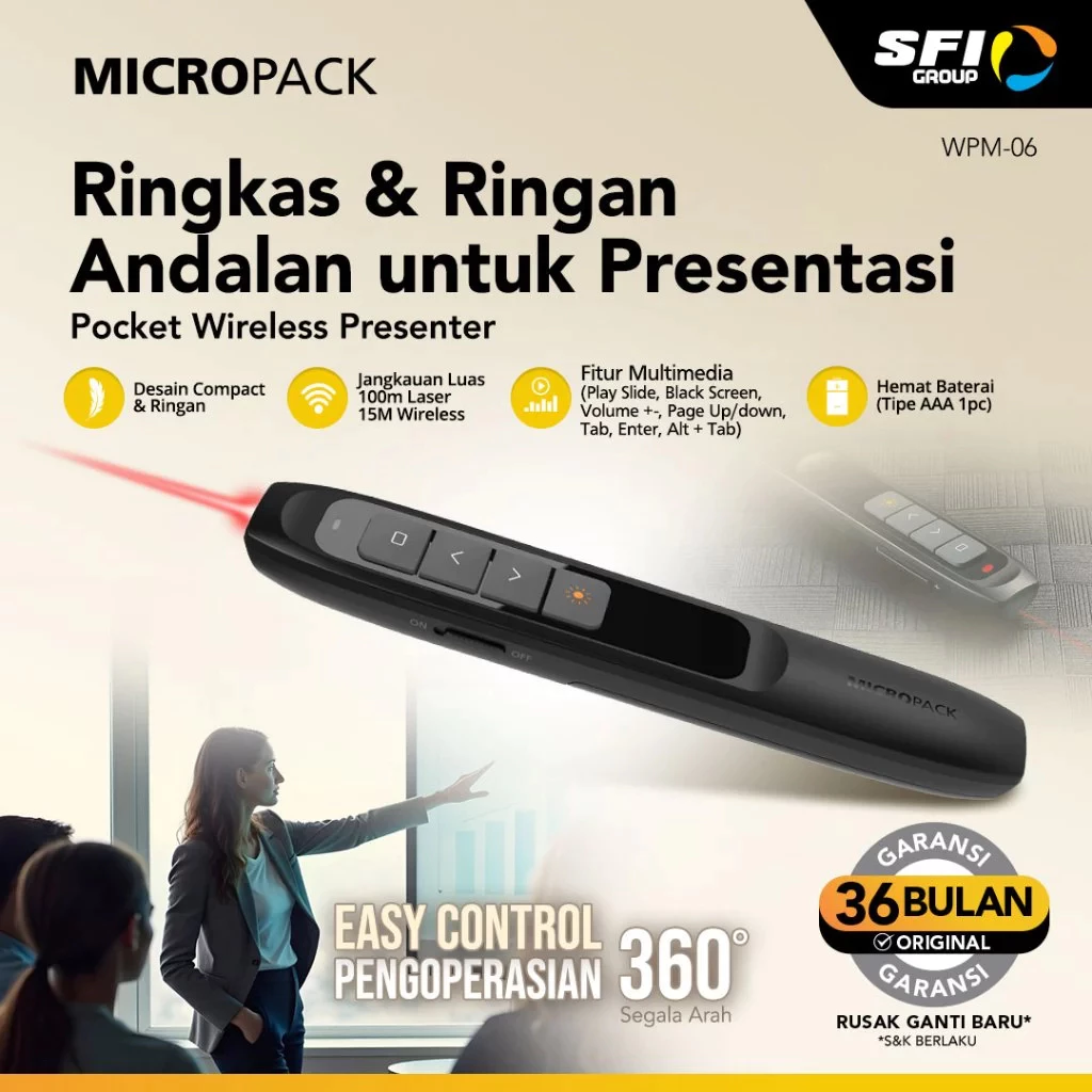 Micropack Wireless Presenter Pointer Lite – Red Laser – 100 Meter Laser Range – Multimedia Buttons – WPM-06