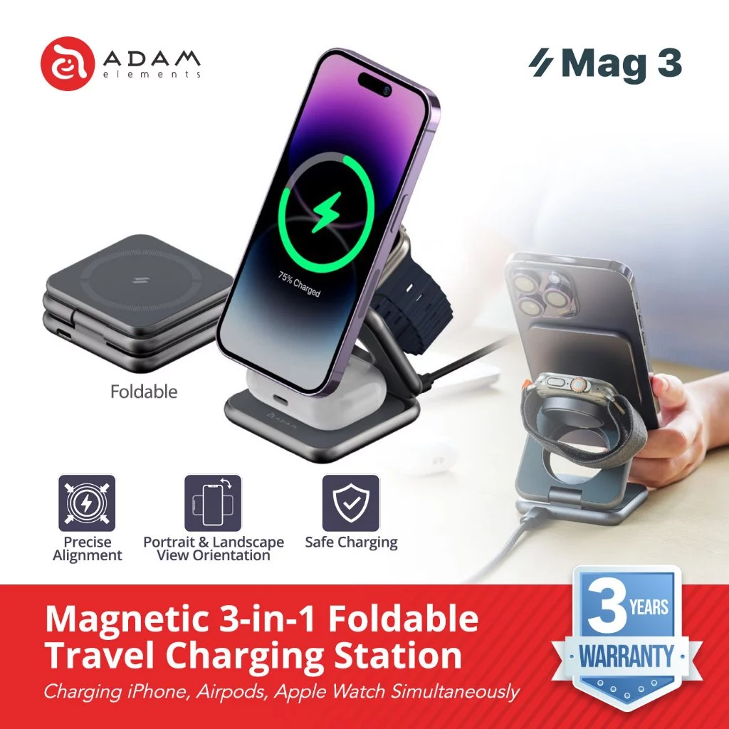 Adam Elements – Wireless Magnetic 3-In-1 Foldable Travel Charging Charger Station – Mag 3