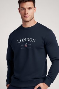 Sweatshirt in Black Color with Italian Horizontal Stripe Print